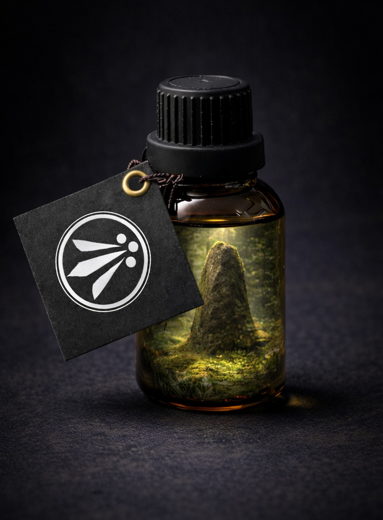 Juniper holds the structure just enough to prevent collapse, before woods and resins gather into something steady and continuous. Cedar draws shape through the air, oak settles it, and vetiver presses downward so nothing disperses too easily.